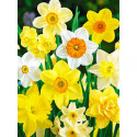 Цветут они в апреле-мае. Цветок нарцисса состоит из 6 листочков околоцветника простого. Каждый из них даёт вырост, образующий коронку, внутри которой находятся 6 тычинок и столбик. Существуют сорта с одноцветными и двухцветными, простыми и махровыми цветками, с различной формой коронки, гладкими или гофрированными краями лепестков.