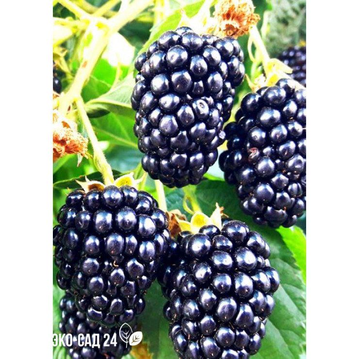 Ягоды этой ежевики невелики, около 3-4 грамм каждая, черные с блеском, уступают по размеру классике. Вкус до стадии полной зрелости абсолютно не привлекателен, травянистый и немного кисловатый. В полной зрелости ягоды приобретают достаточно насыщенную сладость, но становятся мягкими и плохо переносят любые манипуляции с ними. Сорт довольно урожайный, может дать до 10 кг с каждого растения в год. Спеют плоды в августе – начале сентября.